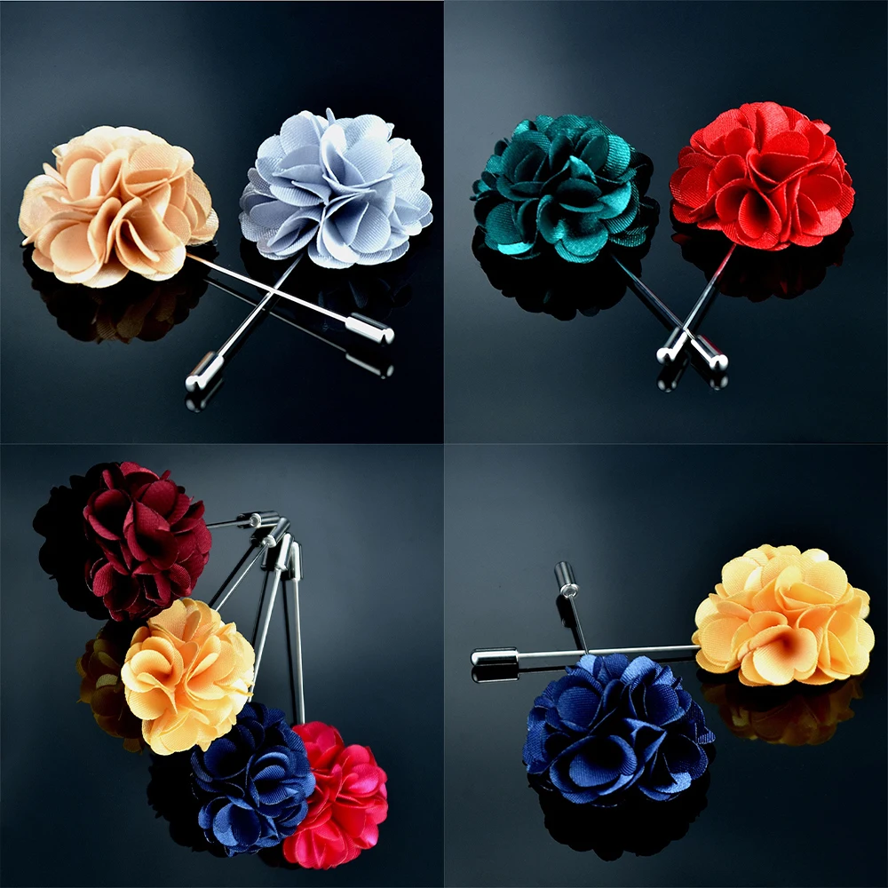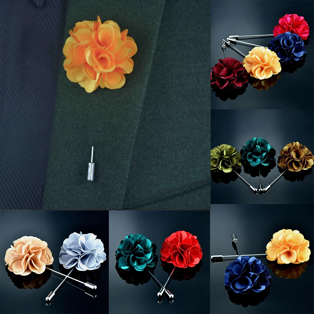 Handmade Men's Brooches Floral Lapel Pin for Men Suit Long Neddle Fabric Flower Brooch Pins for Wedding Fashion Mens Jewelry