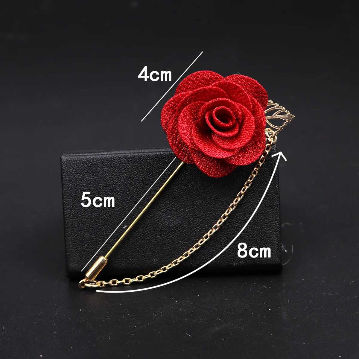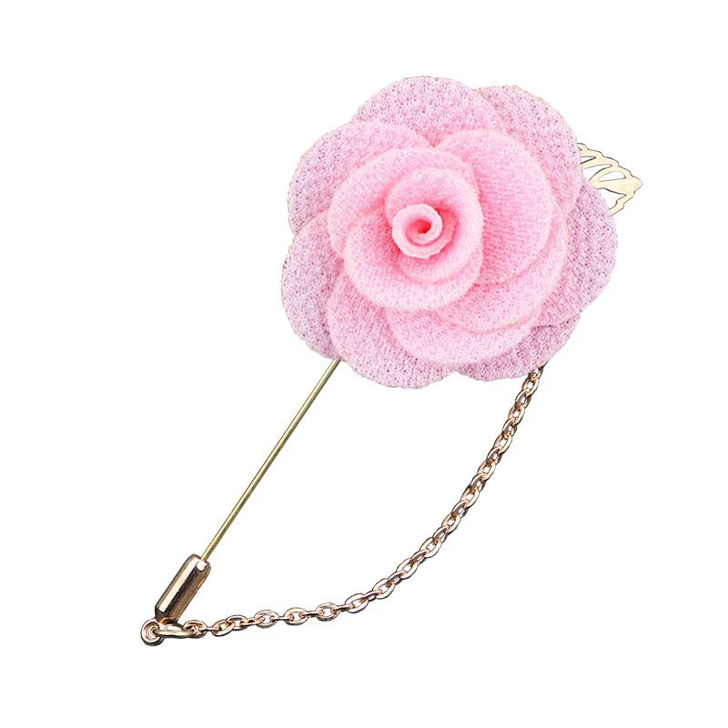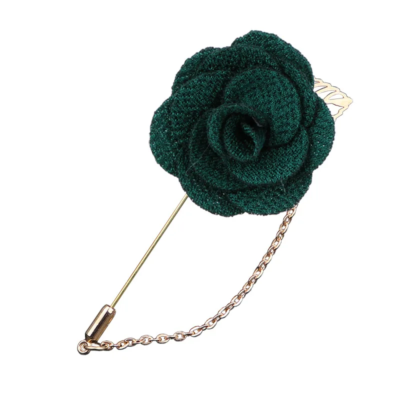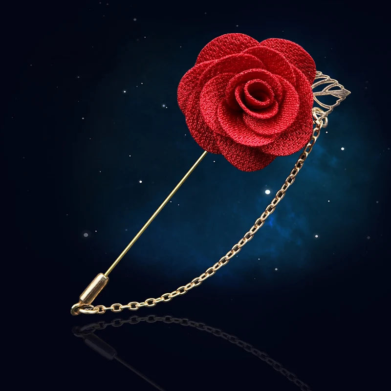 HUSHI Lapel Handmade Brooch Pin Rose Camellia Brooches Pin Chain Flower Leaf Banquet Accessories For Shirt Men's Suit Wedding