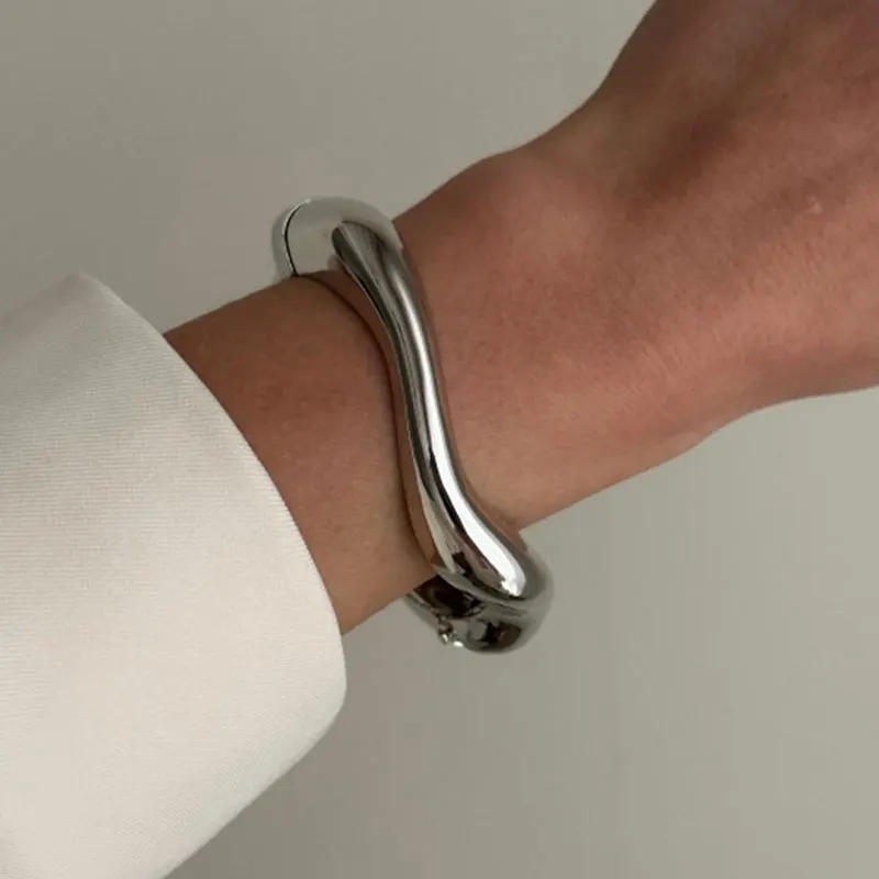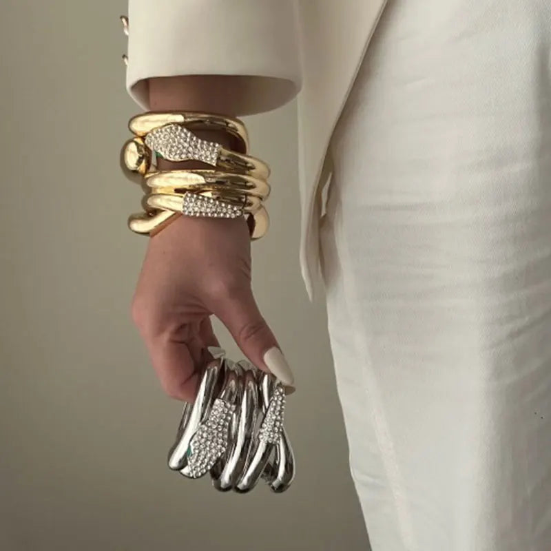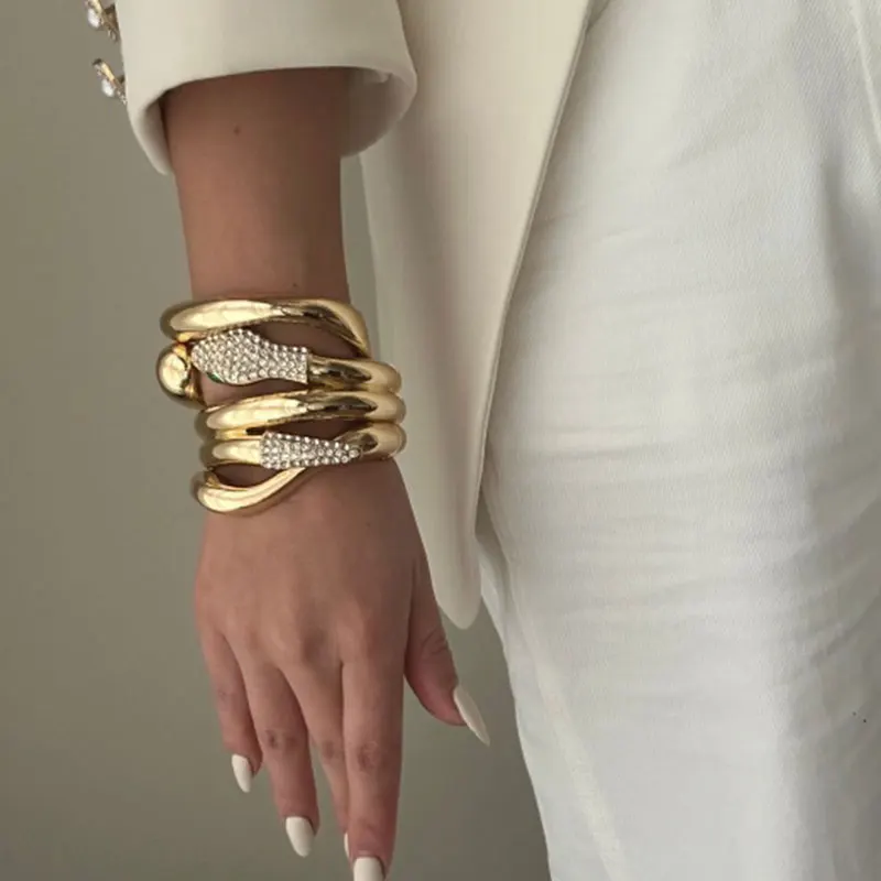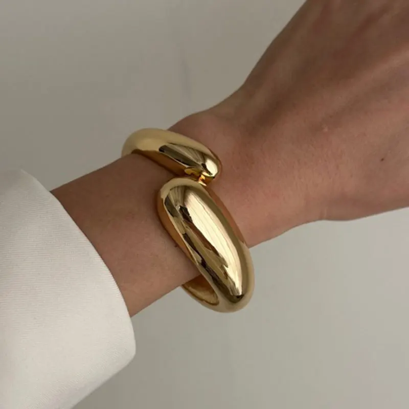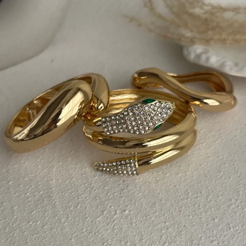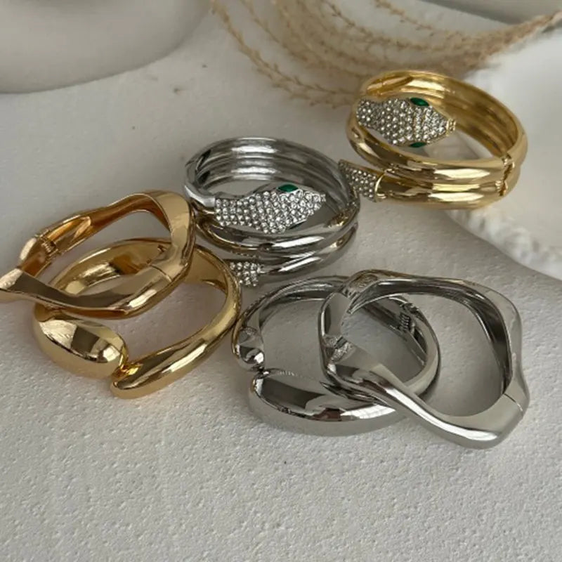 KMVEXO Gold Color Chunky Metal Snake Geometric Wide Cuff Bangles for Women Open Irregular Bracelets Bangle Men Goth Punk Jewelry